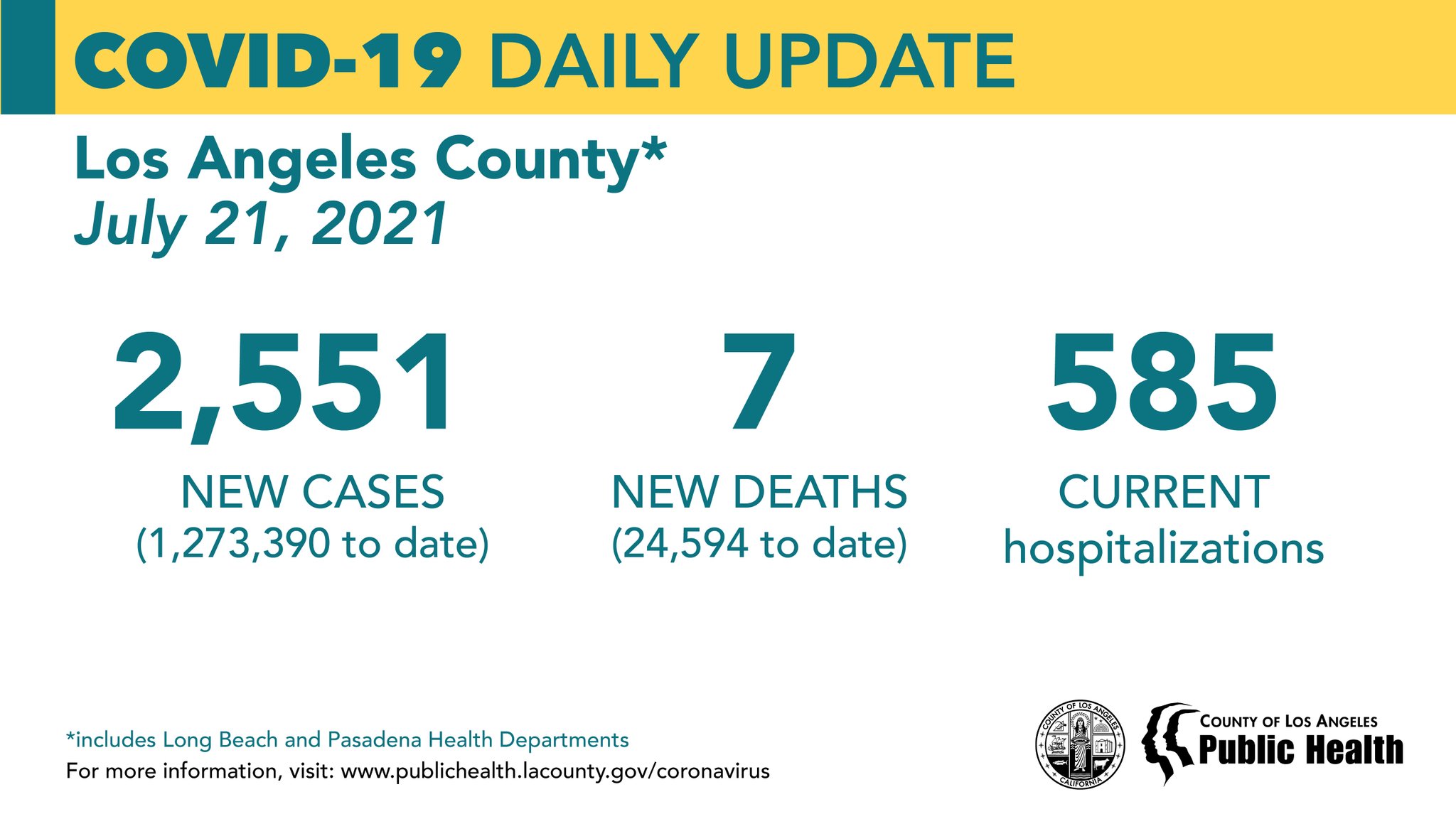 La Public Health On Twitter Covid 19 Daily Update July 21 2021 New Cases 2 551 1 273 390 To Date New Deaths 7 24 594 To Date Current Hospitalizations 585 Https T Co 8h3loxawra